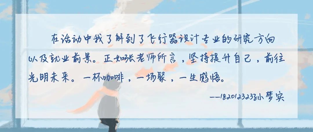 张老师细致的讲解使同学们对“飞制”专业有了更深的了解,也引发了大家对未来的畅想,对于同学们针对专业学习、发展等发面的困惑,张臣老师一一给出了回答。
