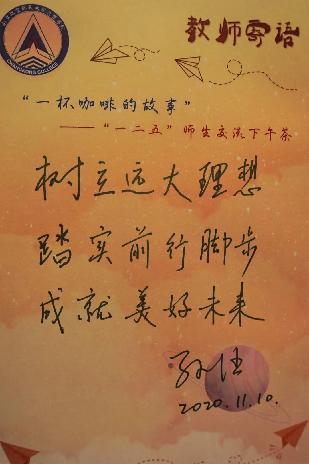 最后,孙院长向大家表达了他的期盼与嘱托。孙院长表示学习就像飞机起飞的过程,起飞前的“加速”是艰难的、充满挑战的,起飞后,“对流层”的攀升过程也夹杂着碰撞和冲突,但只要我们坚持下来,到达“平流层”,事情总会变得顺利。孙院长希望同学们将此时此刻做为一个起飞点,顺顺利利飞离南航,飞得越来越高!