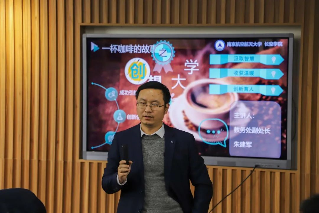 12月13日,教务处副处长朱建军教授做客德赢ac米兰官方合作vwin“一杯咖啡的故事”活动。朱老师热情和蔼,从同学们的角度出发,就本科生科创给出了很多中肯的建议,令大家受益匪浅,豁然开朗。朱老师在交流中流露出对同学们参与科创研究的殷殷期盼与全力支持,深深打动了同学们,也增强了大家对科创的兴趣与信心。