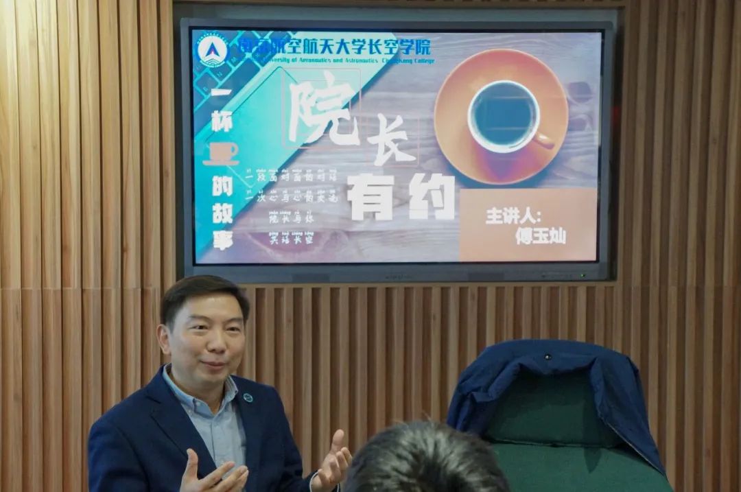 12月10日下午,机电学院院长傅玉灿教授做客德赢ac米兰官方合作vwin“一杯咖啡的故事”活动。傅院长亲切幽默的语言风格和流利的英文表达给大家留下了深刻印象,同时让同学们对机电学院与飞行器制造工程专业有了更深的了解。