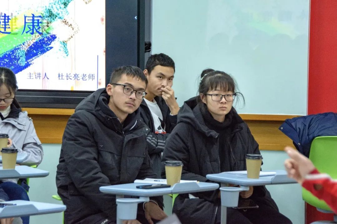 着眼当下大学生,杜老师提出,对同学们来说,科学运动很难坚持的主要原因是不够自律,若同学们能用心坚持,总能有所收获。杜老师建议同学们不要把运动局限在体育馆和健身房内,运动场、宿舍和教室随时可以找到简单的锻炼方法。针对科学的身体锻炼,杜老师给出了建议:训练之前首先需要对自身进行正确评估,其次要明确自己的目标。只有根据自己的身体状况和期望目标做出合理的安排,锻炼计划才更有执行力。杜老师鼓励大家,运动虽然不是万能的,却也能改变很多,健康的体魄往往来源于运动,而非医药。最后,杜老师与同学们开展了问答互动,杜老师还亲身示范如何科学锻炼。