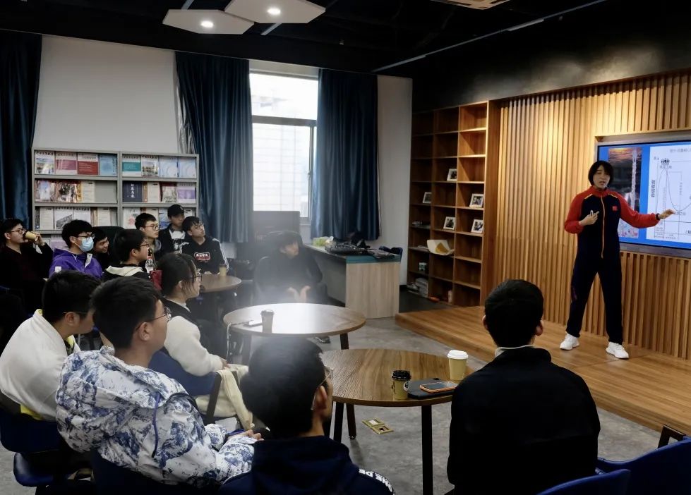 最后,张老师结合体育锻炼的方式方法,分析了体育锻炼与生活、学习间的联系,并提供有助锻炼的相关app与书籍,引导大家勇敢且快乐地拥抱生活。